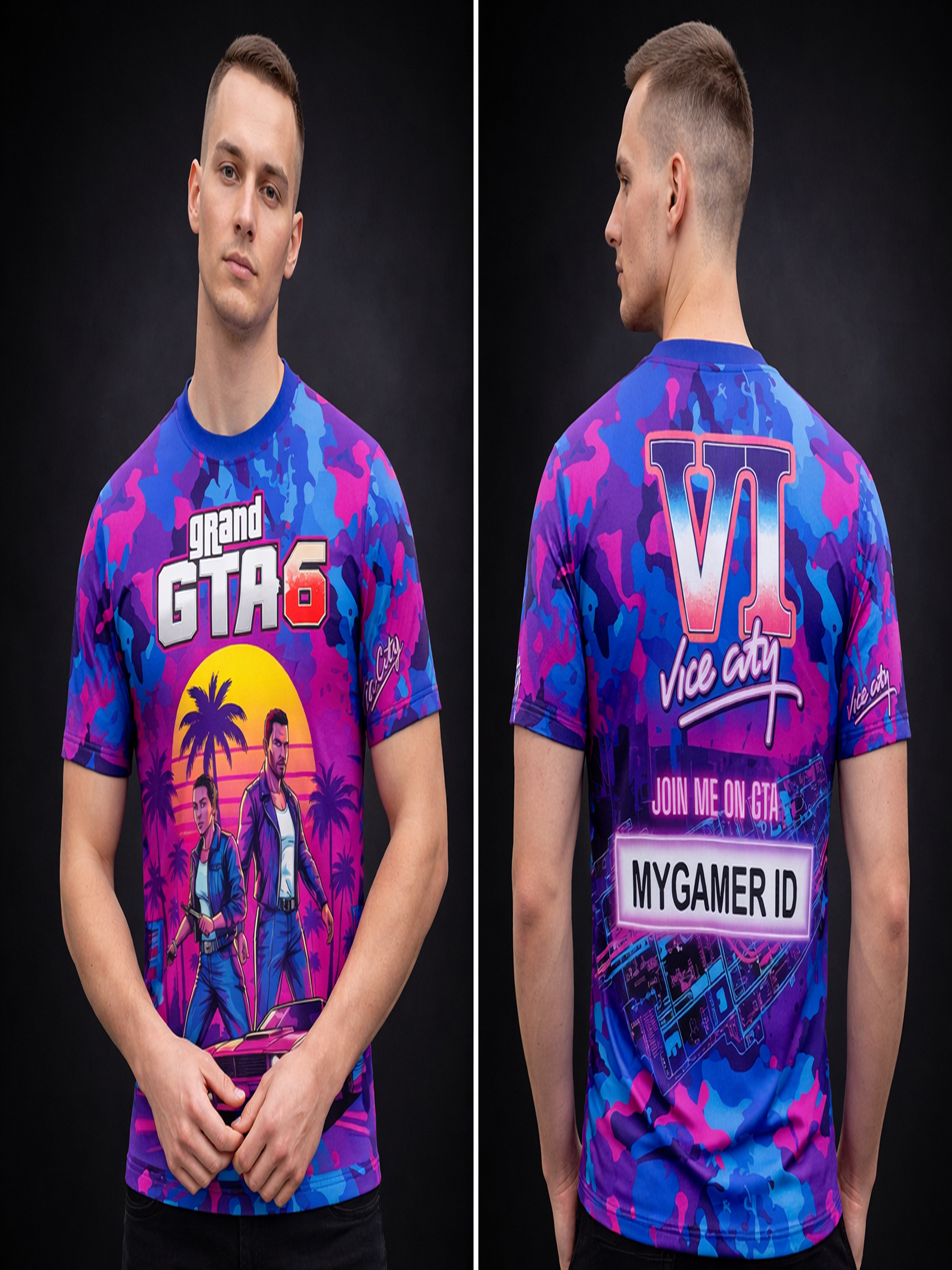 Bring back the retro gaming vibes with our GTA Vice City Inspired Gaming T-Shirt with Custom Gamer ID – a perfect mix of nostalgia and modern street style. Designed with vibrant neon colors and iconic retro graphics, this t-shirt captures the essence of classic open-world gaming.