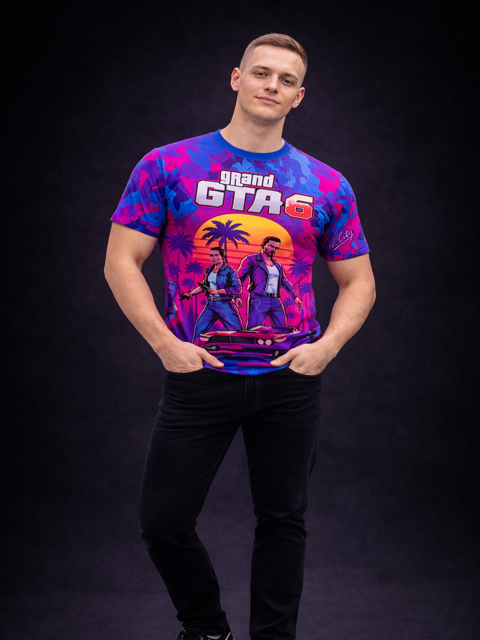 Crafted from premium-quality, breathable fabric, this tee offers superior comfort whether you're gaming, chilling with friends, or stepping out in style. The bold, high-definition print showcases a stunning Vice City-inspired design that stands out instantly.
