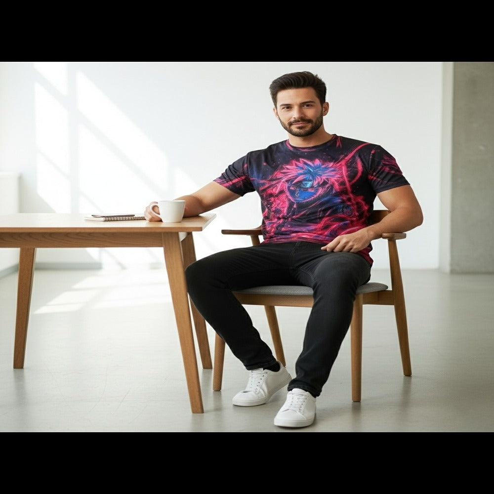 Red Sasuke Uchiha Dark Holographic Graphic Printed T-shirt For Men's/Boy's